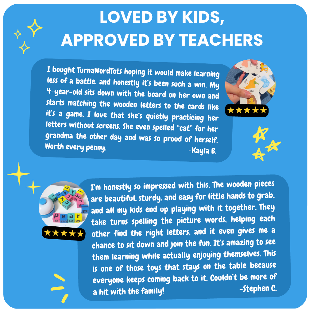 TurnaWordTots builds spelling, letter recognition, and early reading skills while strengthening fine motor skills, hand-eye coordination, and independece.